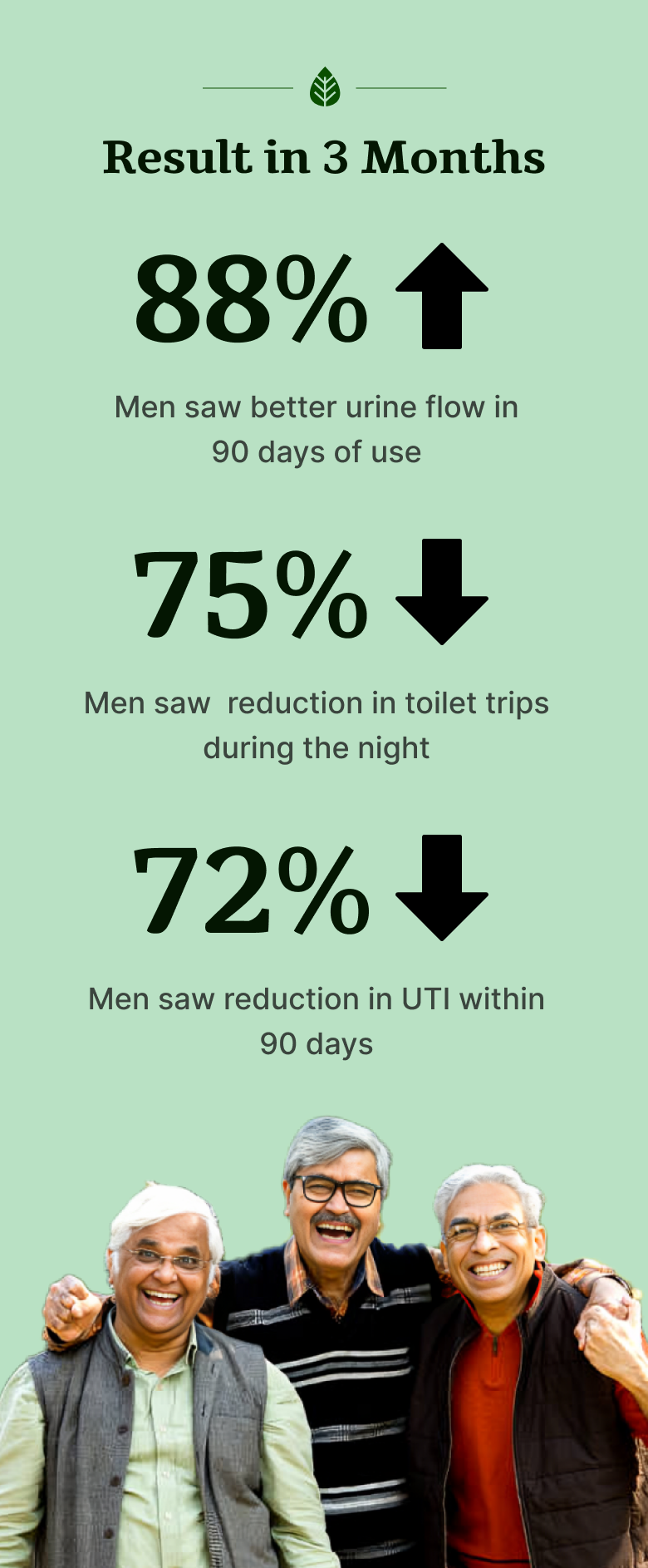 8/10 पुरुषों ने मूत्र प्रतिधारण में कमी की सूचना दी