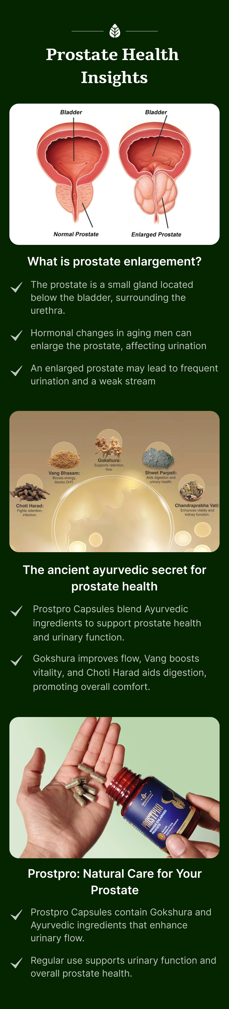 हम अपने प्रोस्टप्रो कैप्सूल पेश करते हैं, जो बढ़े हुए प्रोस्टेट और दर्दनाक पेशाब, मूत्र रिसाव और प्रतिधारण जैसी संबंधित समस्याओं के लिए एक समय परीक्षित समाधान है। ये कैप्सूल आपके मूत्र प्रवाह को आसान बनाएंगे और बढ़े हुए प्रोस्टेट के कारण होने वाली असुविधा से आपके शरीर को राहत देंगे।