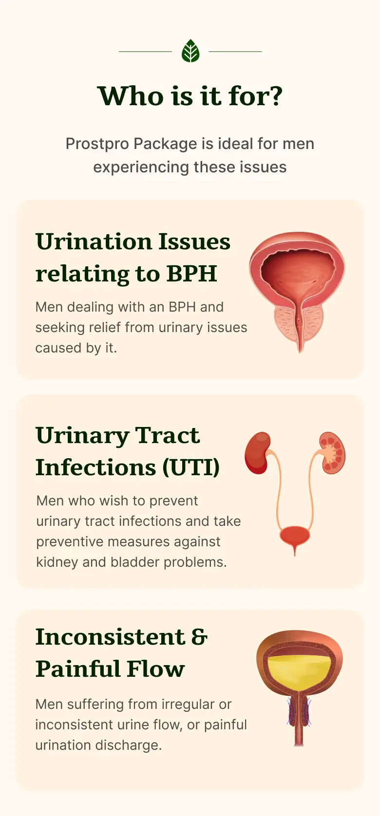 I recommend ProstPro Capsules for managing symptoms of benign prostatic hyperplasia (BPH). Consistent use over 3 months can enhance overall urinary function.