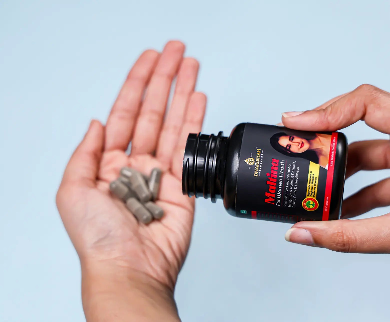 Dharishah Maltina is an Ayurvedic formulation crafted to support women's wellness. It aids in managing issues like Leucorrhoea, PCOS symptoms, painful menstruation, and weakness associated with it, promoting overall reproductive health.